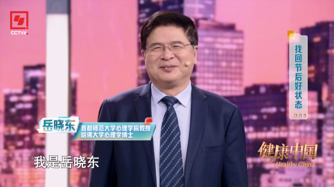本期,由燕之屋獨(dú)家冠名的CCTV-4大型健康類(lèi)欄目《健康中國(guó)》特邀首都師范大學(xué)心理學(xué)院教授、哈佛大學(xué)心理學(xué)博士岳曉東和清華大學(xué)社會(huì)科學(xué)學(xué)院院長(zhǎng)彭凱平教授,以及北京大學(xué)第三醫(yī)院運(yùn)動(dòng)醫(yī)學(xué)科的苗欣博士,與您共同探討如何找回節(jié)后好狀態(tài)。