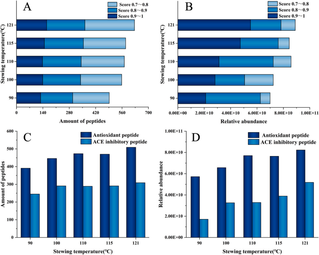 圖:不同燉煮溫度燕窩消化后的ACE抑制活性及活性肽情況②